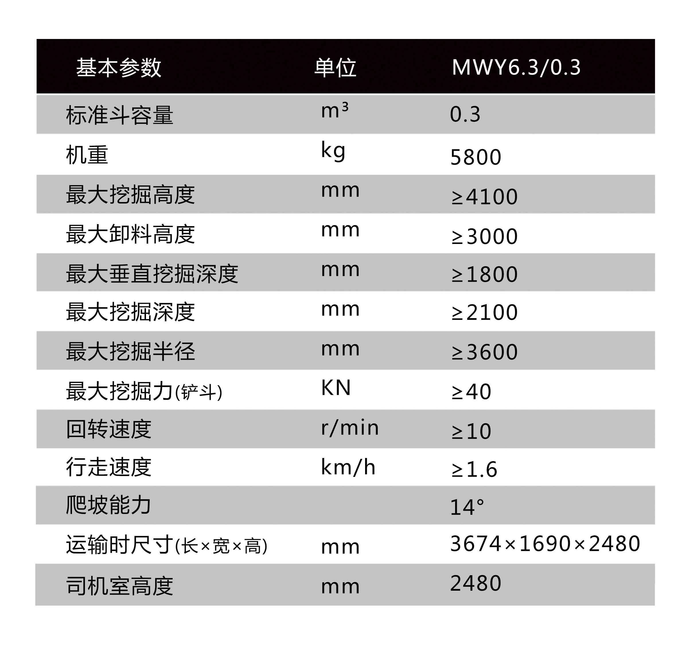 MWY6/0.3煤矿用液压挖掘机基本性能